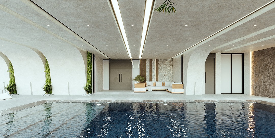 sauna, et piscine intérieure pour une relaxation complète. Un lounge élégant invite à la convivialité, tandis qu’une salle de sport moderne avec vestiaires répond aux besoins des amateurs de fitness. Conçu pour l’équilibre entre détente et remise en forme, cet espace offre un cadre idéal pour le confort des résidents.